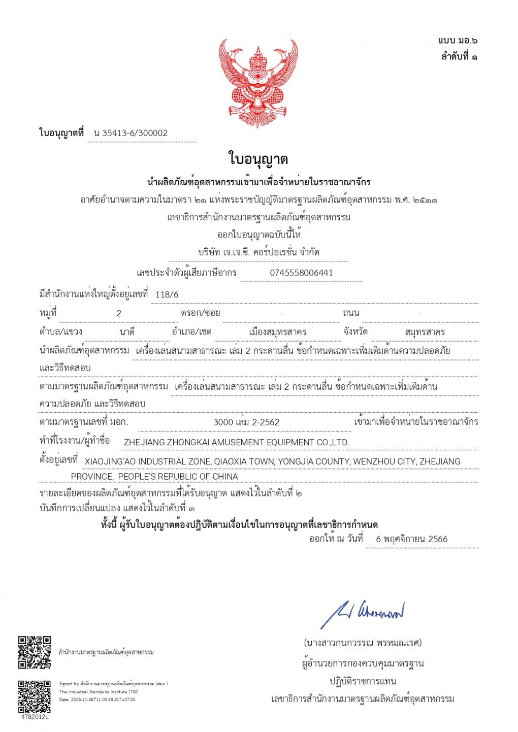นำเข้าและจำหน่ายเครื่องเล่นสนามกลางแจ้งและในร่ม เครื่องเล่นสวนน้ำ บ้านบอล บ้านลม เครื่องออกกำลังกายกลางแจ้ง พื้นยาง บล็อกยาง หญ้าเทียม ที่ราคาถูกที่สุดในประเทศไทย สินค้าคุณภาพดีและมีมาตรฐาน มีการรับรองมาตรฐานจากหลากหลายสถาบัน.